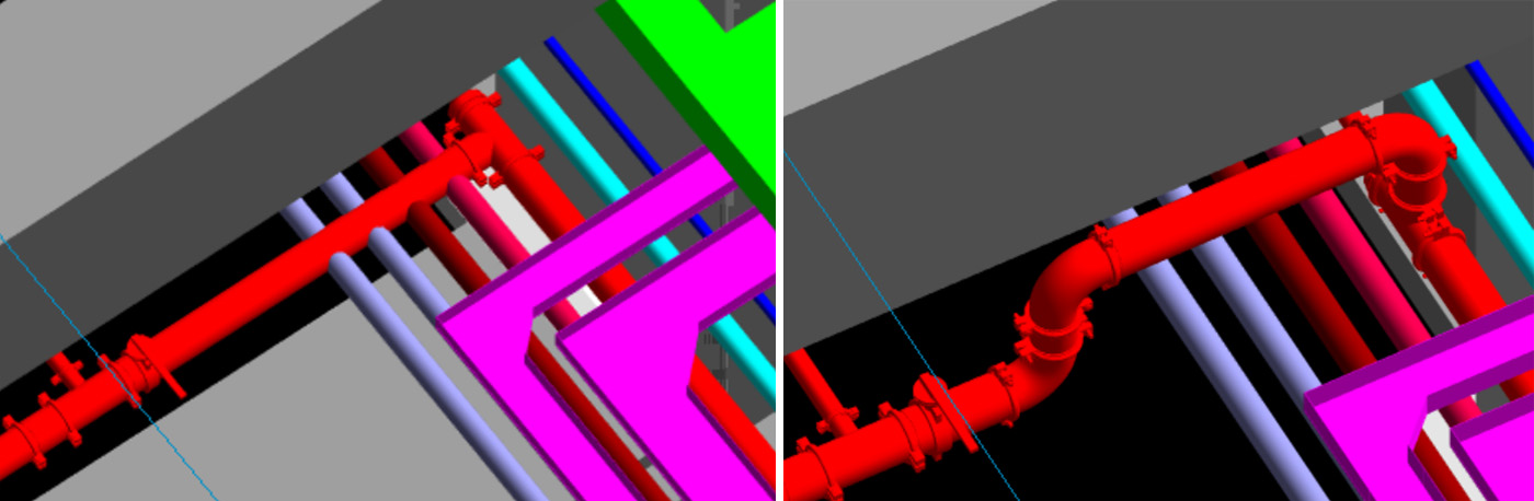通過BIM建模,實現各專業(yè)、各參與方在同一個三維專業(yè)平臺上共同實現碰撞檢查和優(yōu)化綜合,檢查并修改工程圖紙的各種錯漏碰缺問題,優(yōu)化施工方案,減少工程變更,節(jié)約項目投資,保證施工進度。