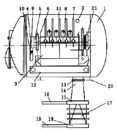 行星式加壓過(guò)濾機(jī):其煤漿槽內(nèi)裝有帶6個(gè)過(guò)濾輥的旋轉(zhuǎn)主軸,每個(gè)輥上都固定有過(guò)濾部件。這些過(guò)濾輥在其軸上轉(zhuǎn)動(dòng),并沿圓周軌道運(yùn)動(dòng),周期性地浸沒(méi)在煤漿內(nèi),第一臺(tái)試驗(yàn)樣機(jī)于1986年研制成功,但只推廣應(yīng)用兩臺(tái),以后未見(jiàn)報(bào)道。
